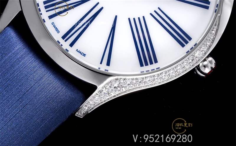表殼:表殼以女士曲線美作為設(shè)計元素,呈現(xiàn)出迷人的身姿,兩側(cè)鑲嵌閃耀美鉆彰顯時尚尊貴。