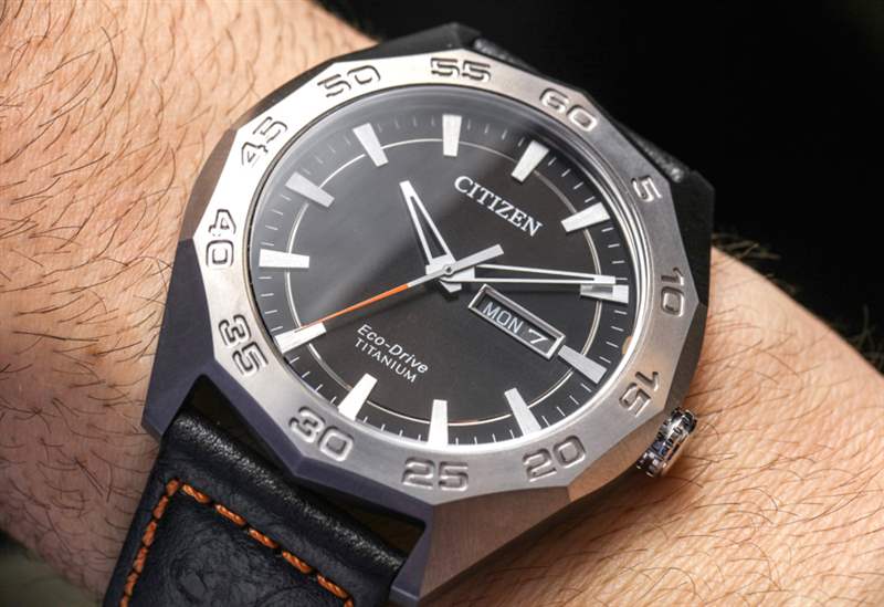 戴在手腕上的 Citizen Eco-Drive Super Titanium AW0060(公認的通用名稱,不會賦予手表個性)寬 44 毫米,非常薄,佩戴也非常舒適。表殼防水深度達 100 米,并覆有礦物(相對于藍寶石)水晶。安裝藍寶石水晶會花費更多的錢,鑒于這個價格,我認為礦物水晶是可以接受的。