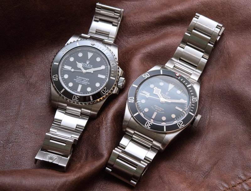 比較: Tudor Black Bay 比 40mm 勞力士 Submariner 略大,帶有 41mm 寬的鋼制表殼,也更厚一些。也許最大的“缺點”是它的鋁制表圈插入材料與勞力士 Submariner 更耐用的陶瓷相比——盡管您確實在 Heritage Black Bay 中獲得了更多有趣的顏色選擇,例如酒紅色。實心表盤設計在歷史上受到勞力士 Submariner 的啟發,因此差異很小,但很明顯。