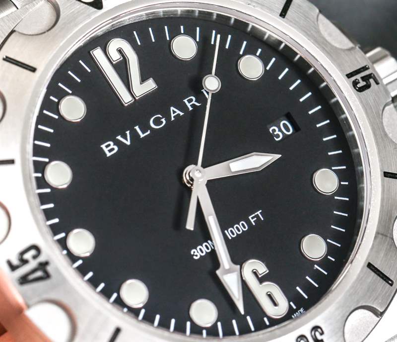 比較:?41 毫米寬的 Diagono Scuba 與勞力士 Submariner 的寬度大致相同,并且它們的厚度輪廓也相似。在手腕上,它們有非常不同的感覺,即使它們試圖服務于相同的目的。兩者都是 300 米防水潛水員,并包含內部運動。Bulgari?Diagono Scuba 沒有陶瓷表圈(它采用全鋼設計),但它是一款令人欽佩且價格較低的勞力士 Submariner 替代品,具有更現代的設計師風格。