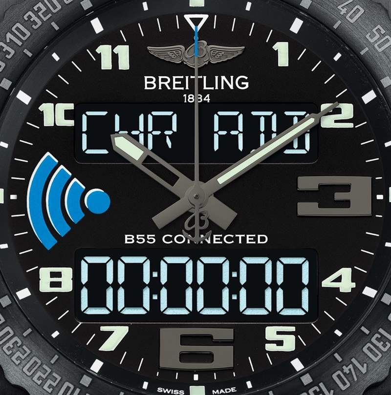 百年靈還將手表內(nèi)部的機(jī)芯稱為口徑 B55,并聲稱它是“制造口徑”。我確信它是百年靈獨(dú)有的,而且我相信某些電子產(chǎn)品實(shí)際上是在瑞士百年靈內(nèi)部生產(chǎn)的。以下是百年靈的機(jī)芯功能列表:“COSC 官方天文臺認(rèn)證、熱補(bǔ)償 SuperQuartzTM、模擬和數(shù)字 12/24 小時(shí) LCD 背光顯示。1/100 秒計(jì)時(shí)碼表、協(xié)調(diào)世界時(shí) (UTC)、倒計(jì)時(shí)/倒計(jì)時(shí)(或 MET 任務(wù)經(jīng)過時(shí)間)、飛行時(shí)間計(jì)時(shí)碼表、單圈計(jì)時(shí)器計(jì)時(shí)碼表、電子轉(zhuǎn)速表、倒計(jì)時(shí)、第二時(shí)區(qū)、2 個(gè)每日鬧鈴、帶星期的萬年歷顯示屏,電池充電指示器。”