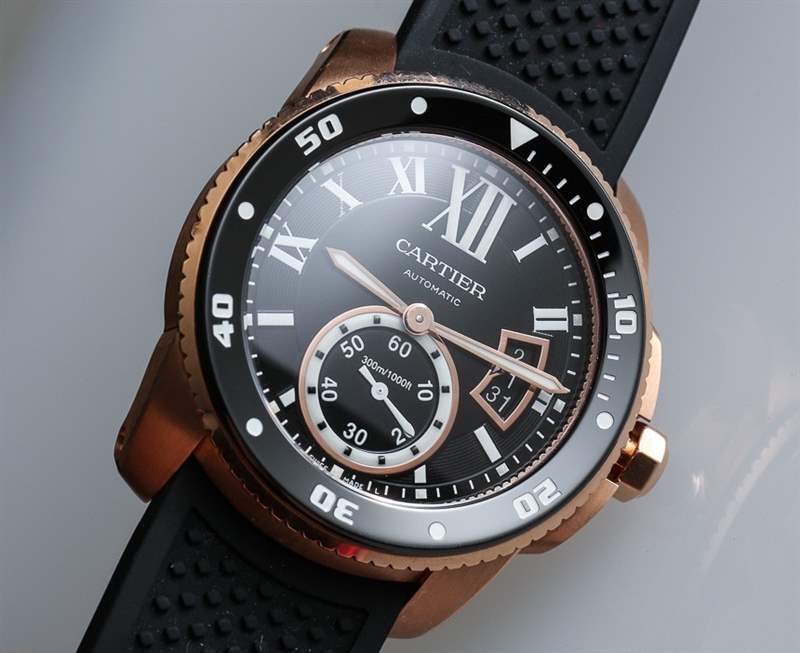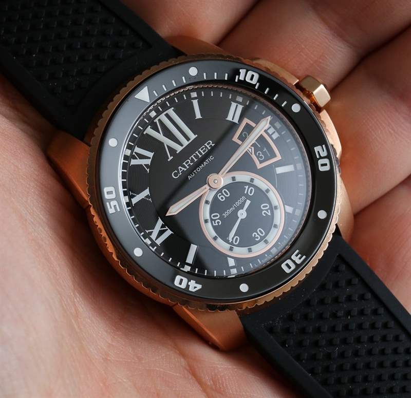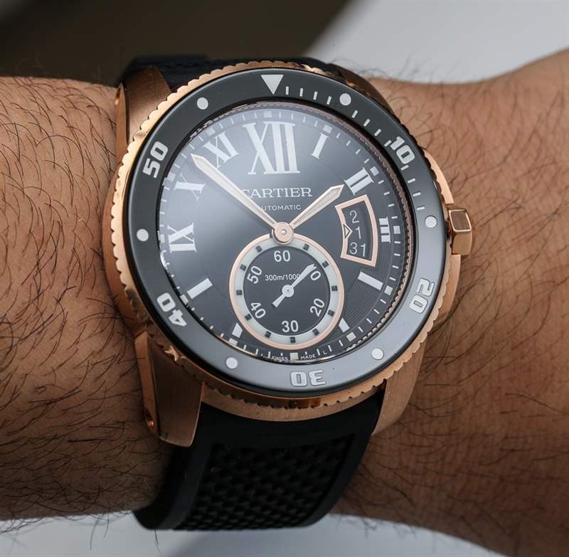 當卡地亞 (Cartier) 正式推出卡地亞 Calibre Diver (卡地亞 Calibre Diver) 腕表時,aBlogtoWatch 于 2014 年初在這里進行了親身體驗。在那里您可以看到精鋼版本和 18k 玫瑰金版本的實際操作圖像。明明是運動手表,我們為什么要審查黃金版?嗯,首先,我覺得黑色表盤搭配玫瑰金表殼很醒目,其次,我覺得既然是一款奢華的生活方式運動表,為什么不把奢華的元素發揮到淋漓盡致呢。