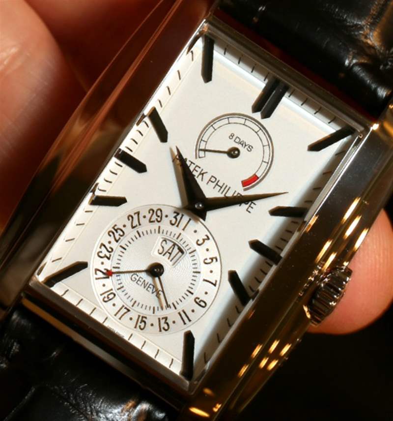 表盤周圍不乏這種情況。不過,讀取時(shí)間還是很簡(jiǎn)單的。百達(dá)翡麗在雙秒針周圍非常順利地融入了星期/日期復(fù)雜功能。表盤頂部是動(dòng)力儲(chǔ)存指示器。起初我覺得表盤上的“8 天”標(biāo)簽是不必要的。然后我意識(shí)到它很有用,因?yàn)閯?dòng)力儲(chǔ)存指示器沒有標(biāo)記,它讓佩戴者了解刻度上八個(gè)標(biāo)記的含義。表盤上的雙紅色暗示優(yōu)雅地插入。廣告留言廣告信息結(jié)束