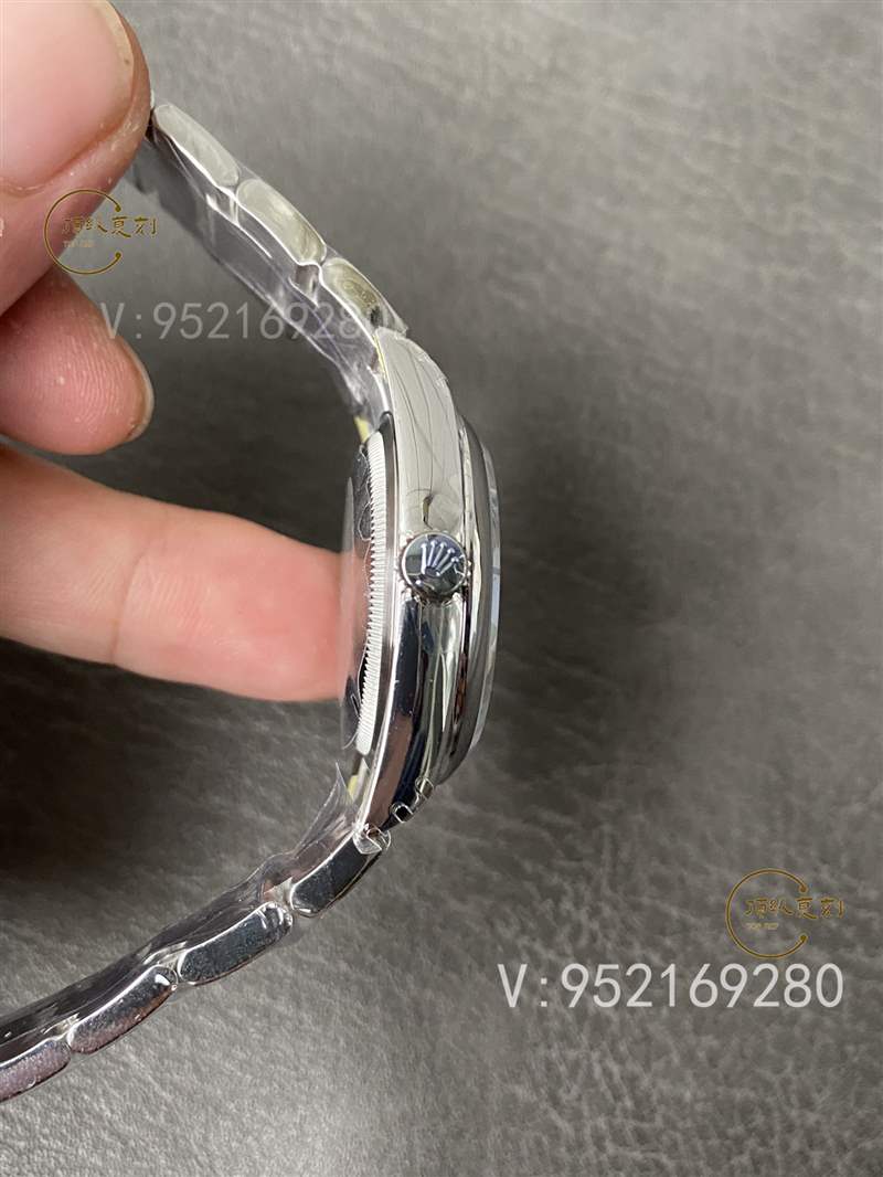 第三個對比的是字面部分,黑色的油性印刷字面,兩者的比較是有差別的.可以看到VS廠整體的字面印刷比較細,這是不對版的狀態.而Clean廠蠔式恒動所有尺寸版本印刷的字面都是比較粗一點,這一點的細節才是對版正品的字面.這一點對比能夠充分表達出C廠恒動與VS廠存在的差異對比.然后整表使用的材質904L精鋼,勞力士正品中就是蠔式鋼,目前對于外觀部分的打磨拉絲拋光的工藝在大廠中都屬于正常操作,就沒有什么可以對比的地方.然后整表的表盤和外觀部分就是這么多,也沒有什么可比性了.